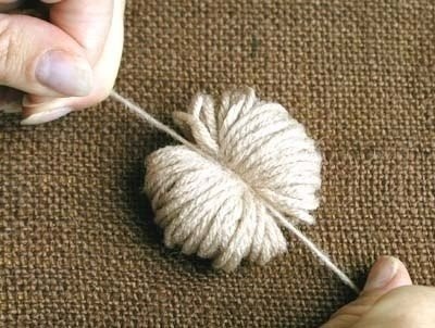 Первым делом наматываем нитку на 2 пальца ,завязываем ,разрезаем пополам все эти действия вы можете посмотреть на фото и видео .После того рак разрезали нашу заготовку по полам ей необходимо придать форму шарика .И таким способом делаем нужное количество красивых шариков ,после чего пришиваем их на кусок ткани и коврик готов .