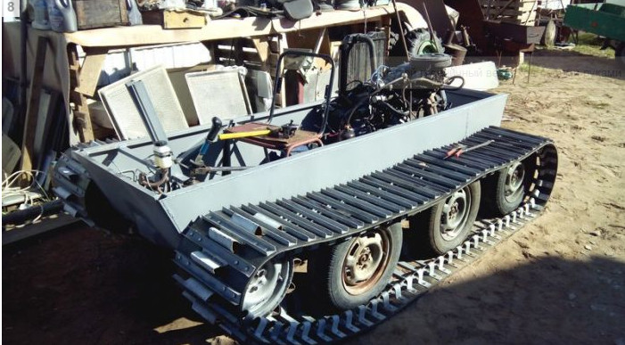 Один парень из глубинки решил сделать из подручных средств в гараже своего загородного дома настоящий вездеход на гусеничном ходу. Для его сборки был использован двигатель и КПП от Ваз 2108, а задний мост от классики. Что самое интересное, в итоге получился отличный самодельный вездеход, которого точно бездорожьем не испугаешь.