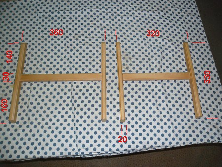 Передняя и задняя планки длиной 650 мм. , шириной 60 мм. и толщиной 20 мм. .