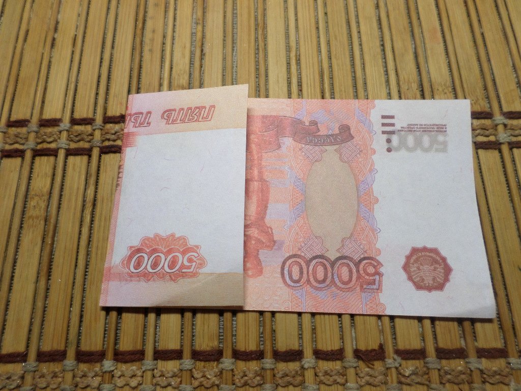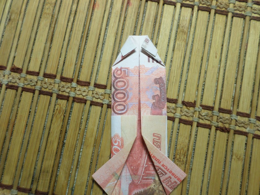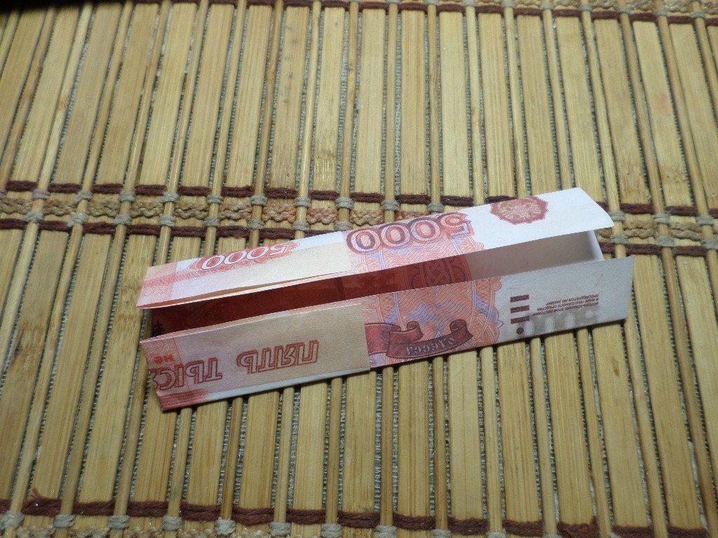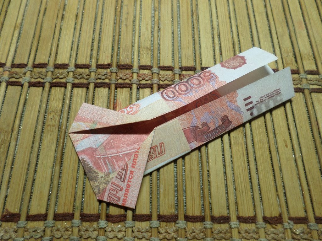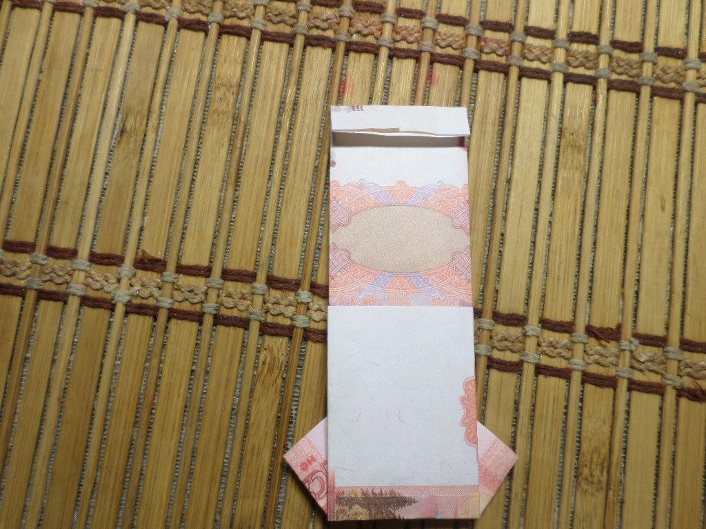 Итак, пошаговая инструкция сворачивания рубашки из купюры. Отгибаем чуть меньше одной трети купюры.