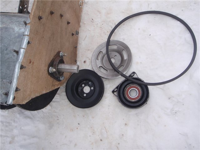 Шнек вращается самоцентрирующихся закрытых 205 подшипниках, я использовал подшипники от спортивного автомобиля КАРТ, но вместо них я думаю подойдут любые подшипники, самое главное чтобы они были закрытые и в них не попадал снег. Для этой цели хорошо подойдет опора кардана от автомобиля «Жигули» 01-07 модели (классика).