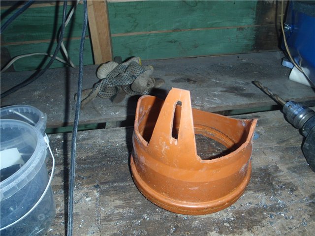 Основная деталь поворотного желоба для отброса снега это кусок пластмассовой канализационной трубы диаметром 160мм. так как диаметр желоба должен быть больше ширины лопатки шнека при помощи которой и осуществляется выброс снега. Как я сделал желоб хорошо видно на фотографиях, если будут вопросы, объясню отдельно.