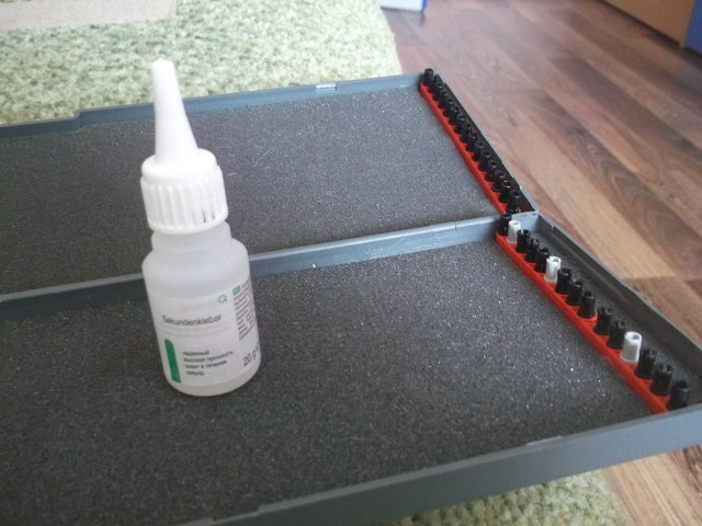 Для крепления использовал цианокрилатный клей, вещь очень жесткая, клеит в момент, но только пластмассу. Вырезал в местах приклеивания губку, чтобы ниже было. Чтобы закрывалось сделал отступы.