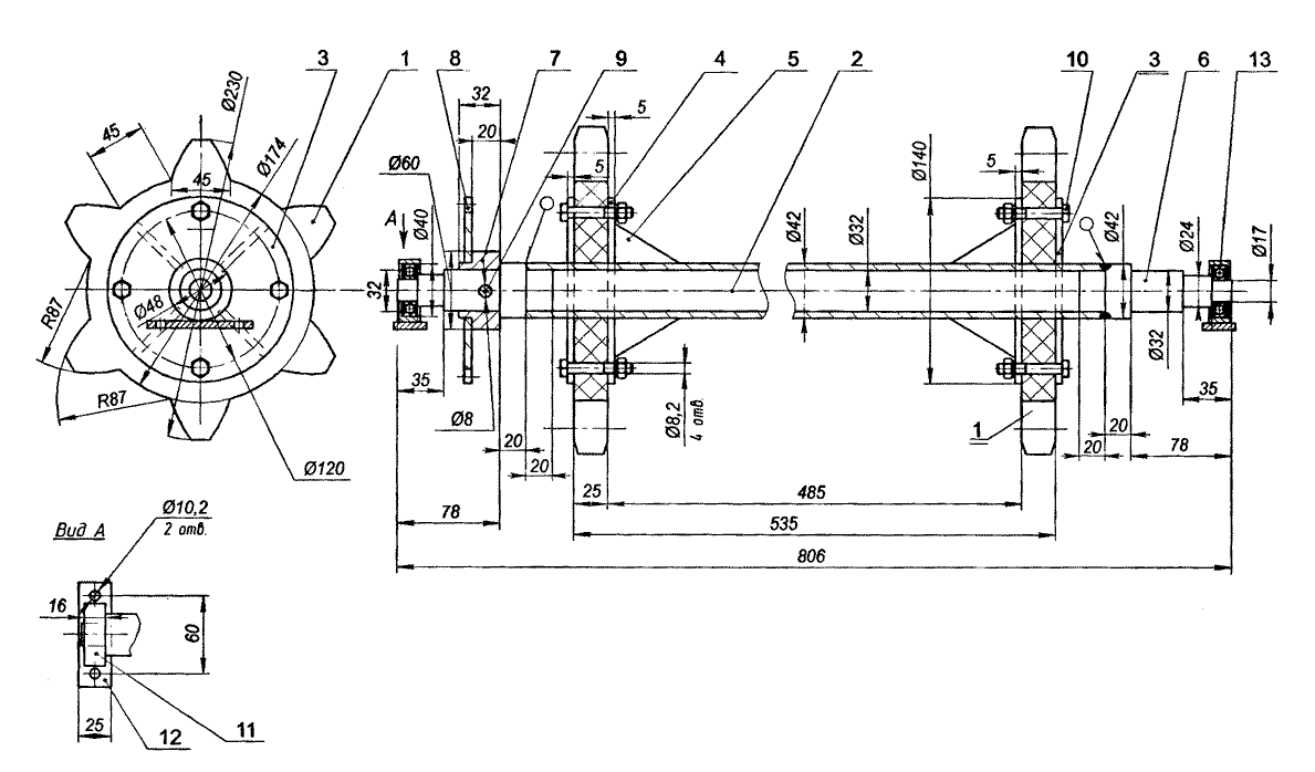 За первый выходной сделал гусеницу и ведущий вал, закрепил его на раме, так как валы для колес сделать токарь не успел.