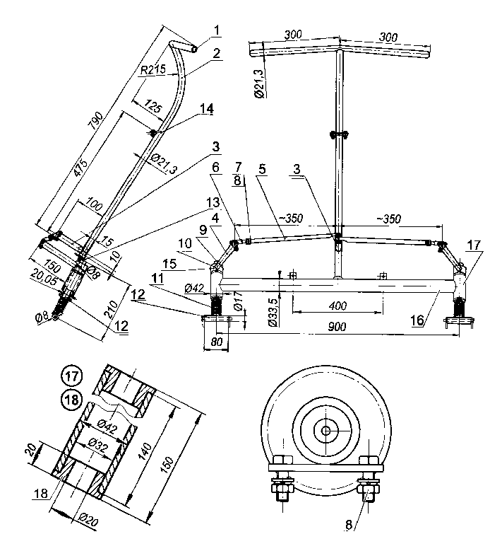 Сделал чертежи для токаря и через неделю для меня сделали нужные детали. Процесс сборки ясен по фотографиям все очень просто, а принцип работы будущего снегохода примерно такой по твердой поверхности (укатанные дорожки) снегоход двигается на колесах, лыжа, которая находиться внутри гусеницы не касается троков, только своими боками не дает гусеницы сместиться в сторону, тем самым не возникает дополнительной нагрузки и износа траков без смазывания траков снегом, а в рыхлом снегу упор происходит на лыжу.