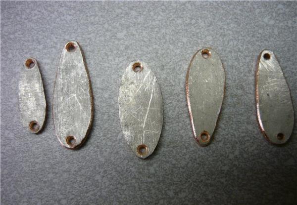 Больших троллинговых колебалок не делал, а до маленьких ультралайтовых руки иногда доходят. Вырезаем заготовки, в данном случае — медь 2 мм.